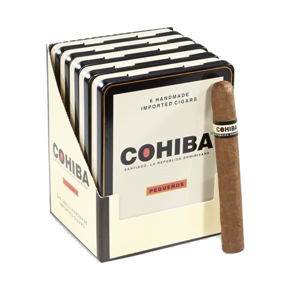 COHIBA” is a well-known and prestigious cigar brand, and “PEQUENOS” suggests that these are small-sized cigars, suitable for shorter smoking sessions.